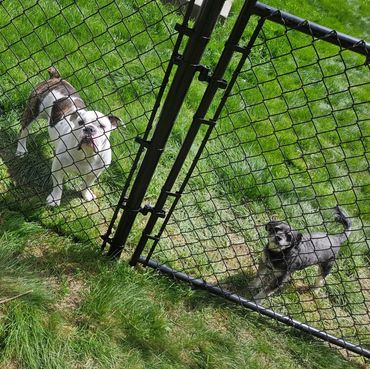A community of happy dogs, now safer and freer thanks to a new fence by Dirigo Fence Company—providing the perfect space to run and play while owners enjoy peace of mind. Contact us today and your canine companion can join the club!